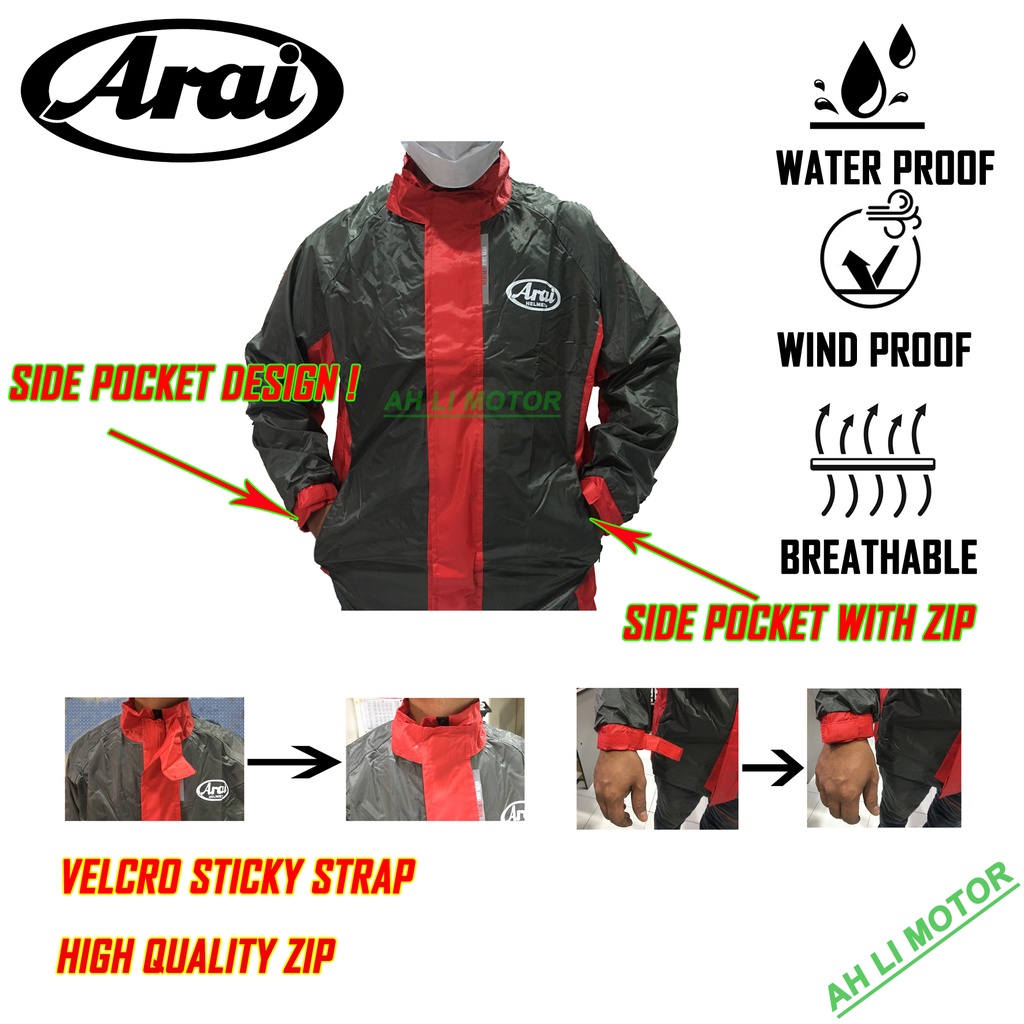 Arai Premium Quality Rain Coat Givi S To 7xl Have Two Side Pocket Baju Hujan Arai 2 Layer Waterproof Raincoat Shopee Malaysia