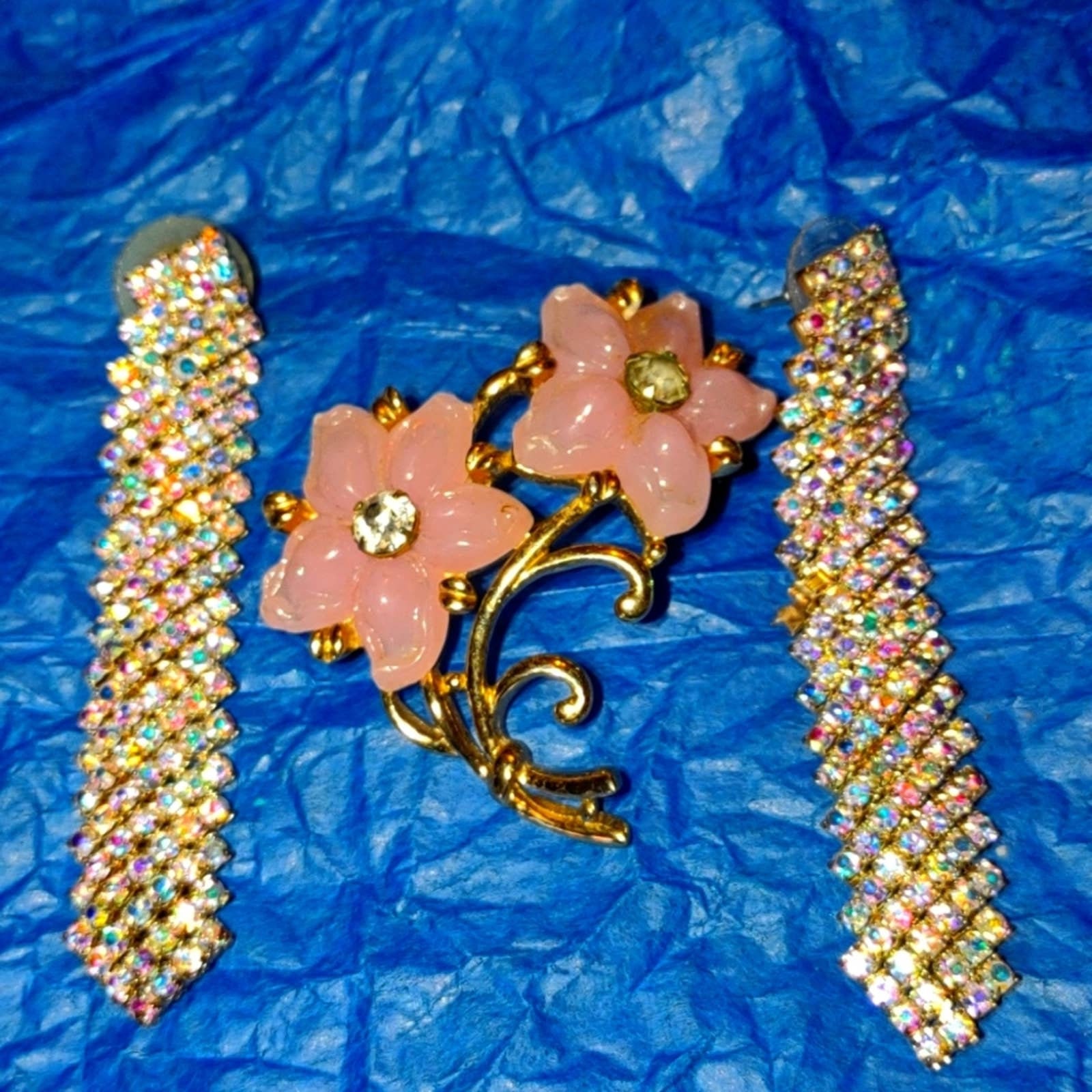 Gorgeous Swarovski Crystal Earrings And Celluloid Flower Etsy