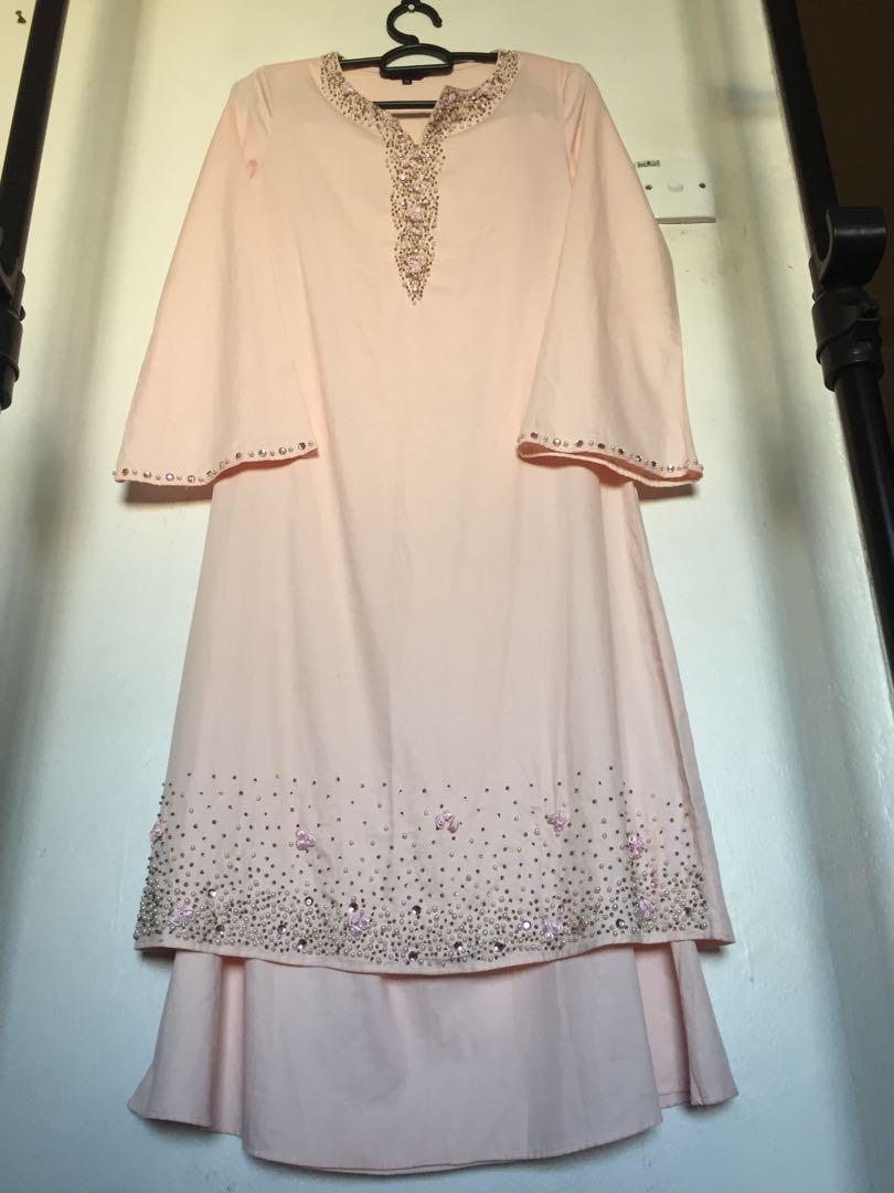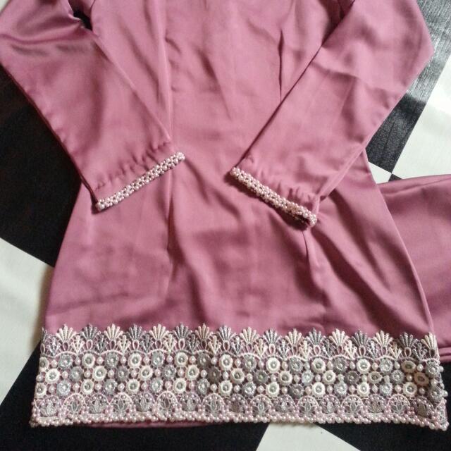 Baju Kurung Pahang Cotton Soft Pink Jahit Manik Tangan Size S Women S Fashion Muslimah Fashion Baju Kurung Sets On Carousell